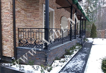 Перила из кованых элементов используются в качестве ограждений балконов, внутренних или входных (наружных) лестниц.