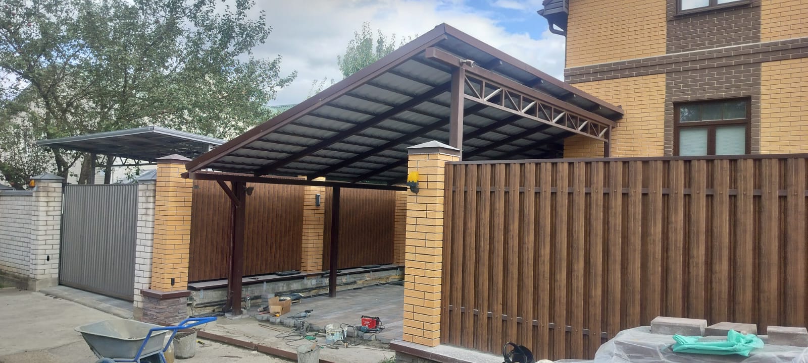 Если Вас интересуют навесы для автомобилей цена с установкой, внимательно ознакомьтесь с представленным у нас ассортиментом. Мы изготавливаем строения разных видов, конструкций и размеров. Строительство навеса для авто под ключ портфолио тоже можно посмотреть на нашем портале. Приобрести понравившуюся конструкцию, или заказать навесы по собственному проекту, можно в Москве и области, а также в Одинцово. Так как на автонавесы цены в Одинцово и цены на навесы для авто в Москве у нас одинаковые, приобретайте понравившиеся конструкции там, где Вам удобнее.